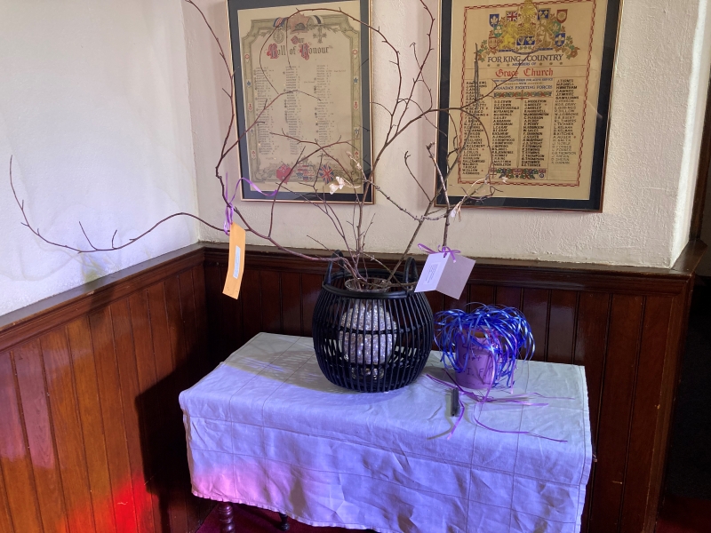 Some of you may choose to observe Lent through the practice of almsgiving. This year’s Purple Ribbon campaign offers a meaningful way to support Grace’s capital fund. Throughout the season, you’ll find special envelopes marked with a purple ribbon. You’re welcome to place your gift inside and hang it on the branches as a visible sign of your support.